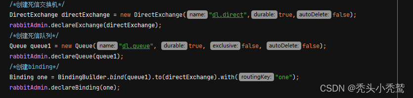 注意了:死信交换机与死信队列的绑定和之前的交换机与队列绑定是一样的。