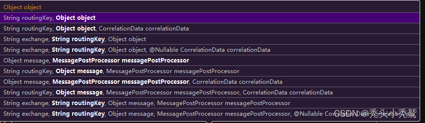 我们可以通过rabbitTemplate封装类的convertAndSend里面的方法可以知道可以使用