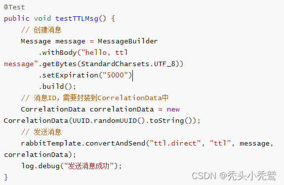 这里涉及到一个点就是消息id的问题,这里使用到了uuid,注意uuid是一个唯一生成的唯一数值。而消息也是有id值的。因为当拿去的时候也是会通过id来进行幂等性!