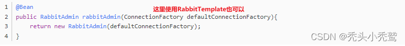 此时,生产者相比消费者需要去创建一个@Bean来记录RabbitAdmin,在启动类里面创建。