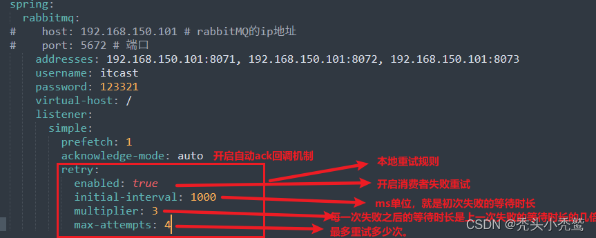 注意:此时的重试并不会进入到mq的requeue队列里面去,而是消耗本地重试。