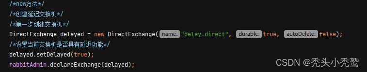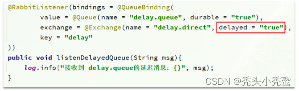 我们需要去设置一个交换机,并且该交换机定义属性delayed要为true。意思就是开启延迟发送功能。