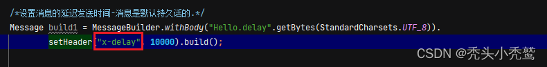 "x-delay"对应的是消息是需要延迟操作的。而后面接的是以ms为单位的。