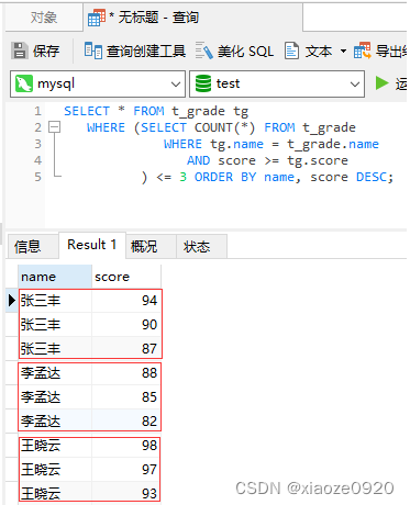 - 同一个学生有多门成绩,现需要计算每个学生分数最高的前3个成绩