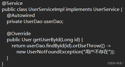 @Autowired:自动注入依赖(如 DAO 或其他 Service)。