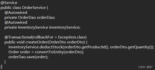 协调调用:整合多个 DAO 操作或外部服务(如调用用户服务与库存服务)。