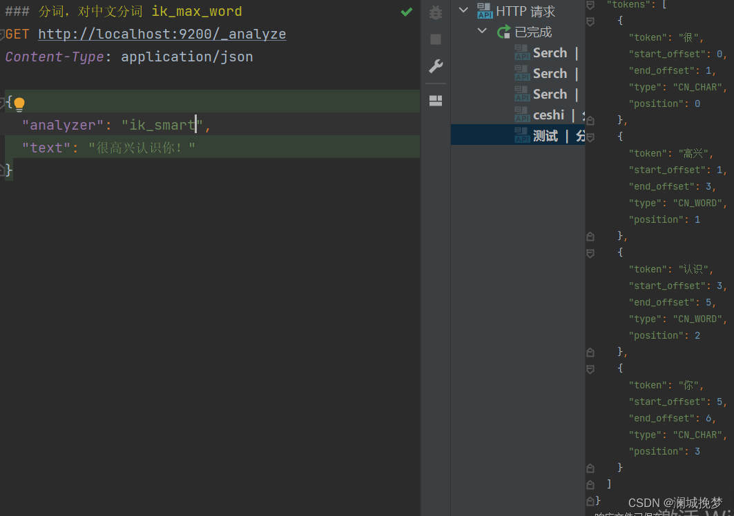 注意:完成后,需要重启Elasticsearch(关了再打开)才可以应用新添加的分词器!