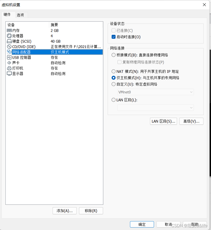 3.下载完成之后,关闭虚拟机,将网络模式设置为仅主机连接