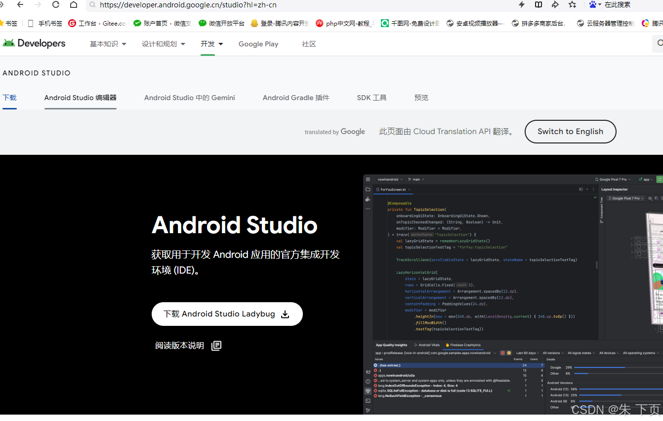 点击后的页面是中文的,可能页面出现错误,展现不出来下载版本的列表: