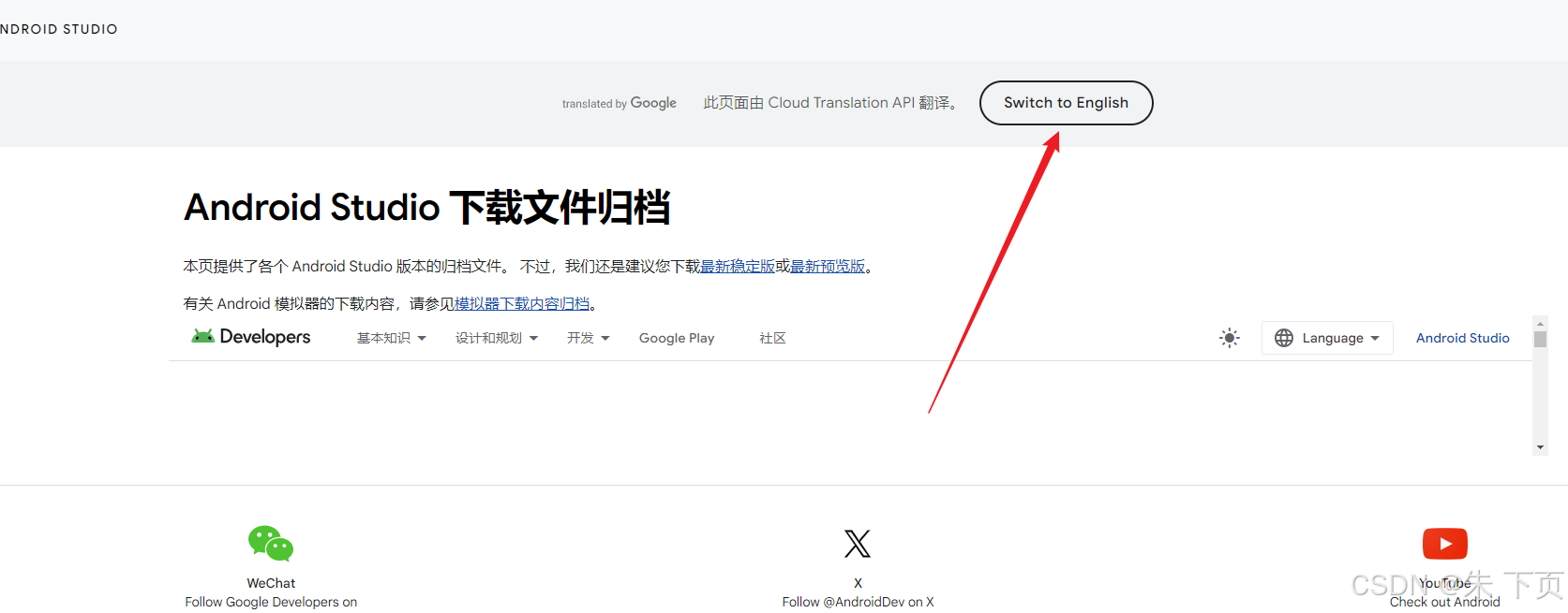 点击一下这里,再切换成英文就可以了,就看到所有的版本了。