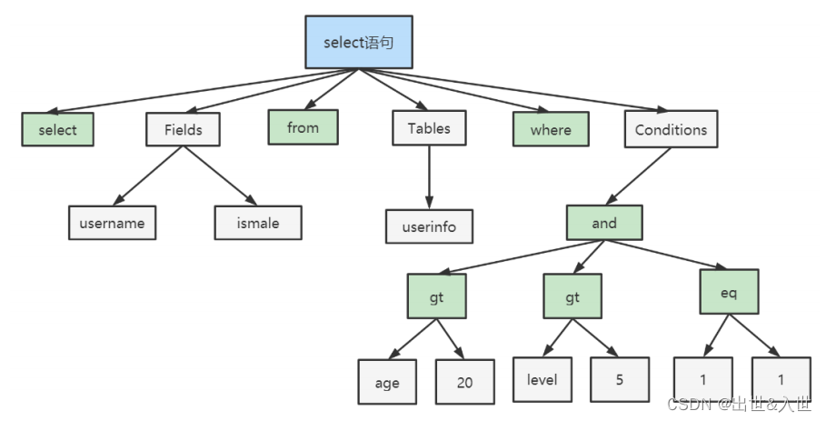 在分析之后,会得到4个Token,其中有2个key,它们分别是SELECT、FROM。