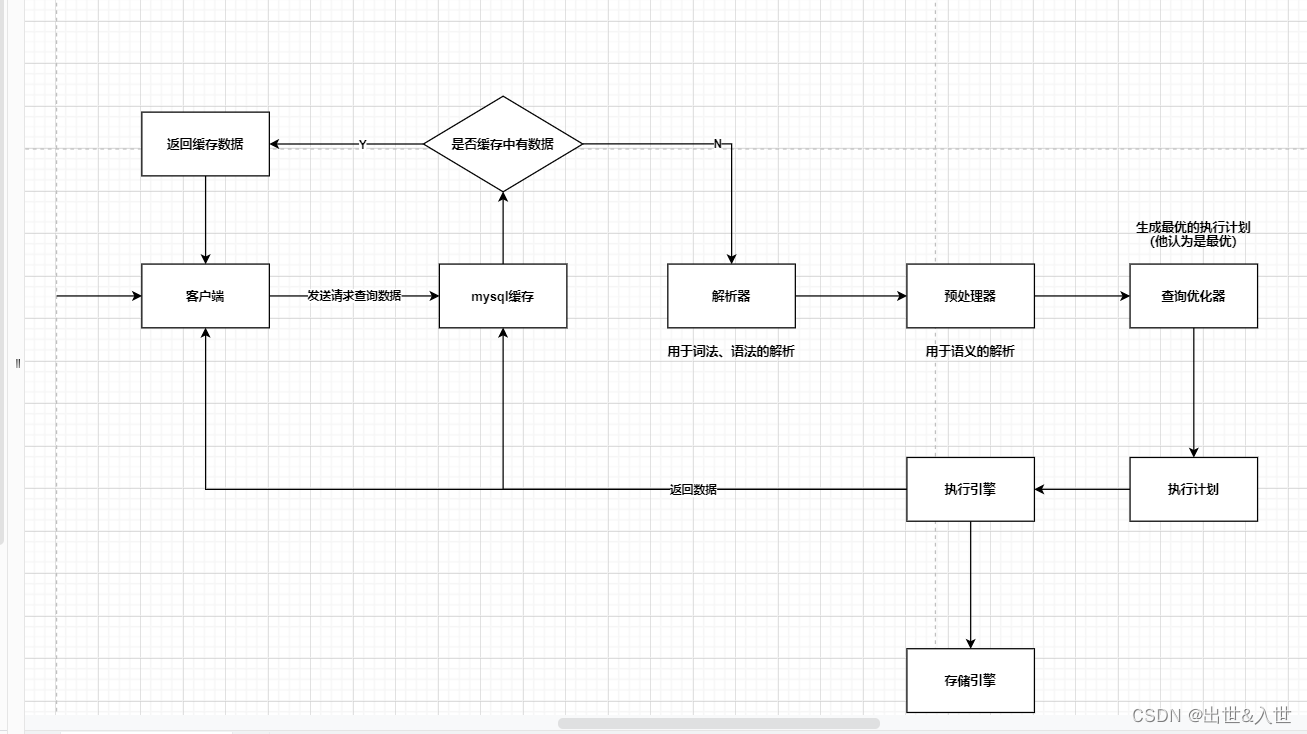 MySQL内部维持着一些Cache和Buffer,比如Query Cache用来缓存一条SELECT语句的执行结果,如果能够在其中找到对应的查询结果,那么就不必再进行查询解析、查询优化和执行的整个过程了,直接将结果反馈给客户端。