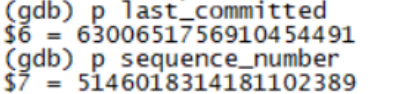 那么这个条件不可能成立,因为last_committed == SEQ_UNINIT,也就不会报错,但是实际上这里报错了。从报错的seq number和last commit值来看,应该是内存越界访问的结果,否则不会有这种很大的seq number和last commit(sequence_number (7870797233) 、 last_committed (2957740090370948108))。