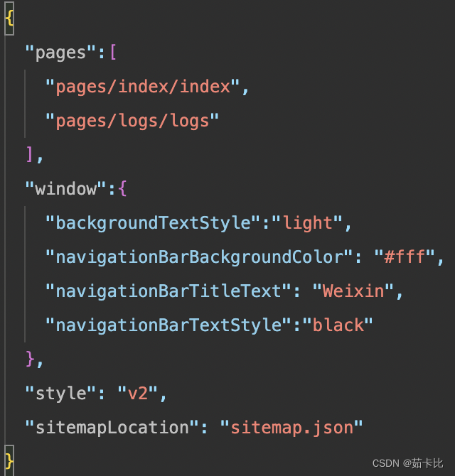 pages:用来记录当前小程序所有页面路径 window:全局定义小程序所有页面背景色、文字颜色等 style:全局定义小程序组件所使用的样式版本 sitemapLocation:用来指明sitemap.json的位置