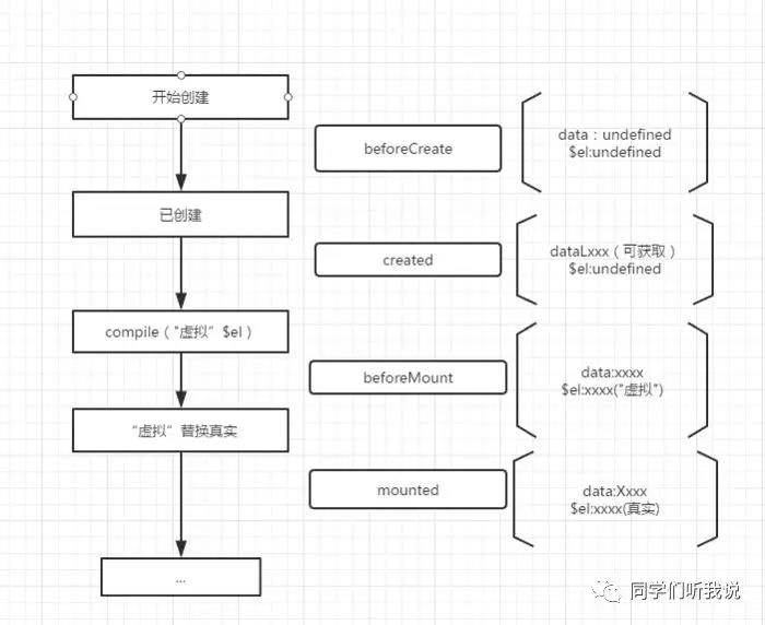 挂在开始之前被调用,相关的render函数首次被调用(虚拟DOM),实例已完成以下的配置: 编译模板,把data里面的数据和模板生成html,完成了el和data 初始化,注意此时还没有挂在html到页面上。