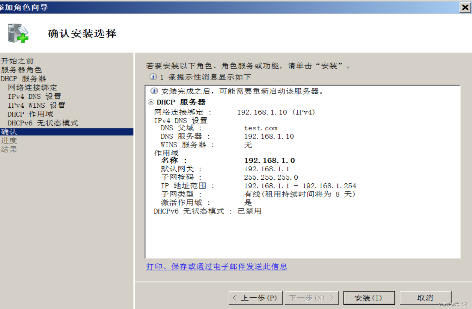 此时DHCP服务器就安装完成了