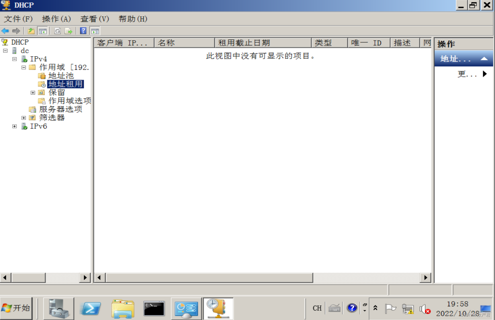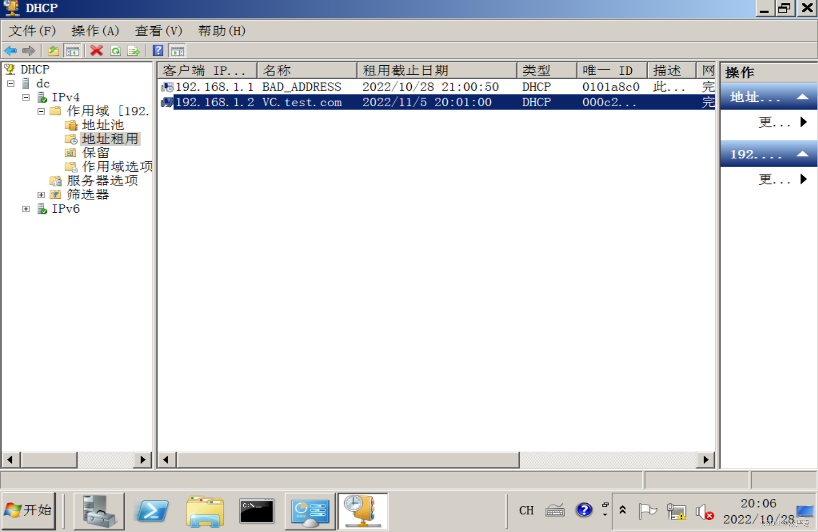 此时DHCP服务器中多了几条项目