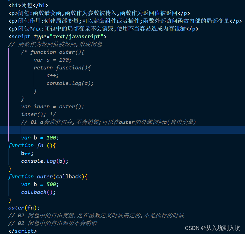 闭包中的自由变量不会自动销毁 会常驻内存 使用不当容易造成泄漏
