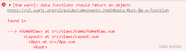 意思就是我的HomeView.vue里面的<script>里面的data(){}里面没有return{}函数,我们只需要添加即可。
