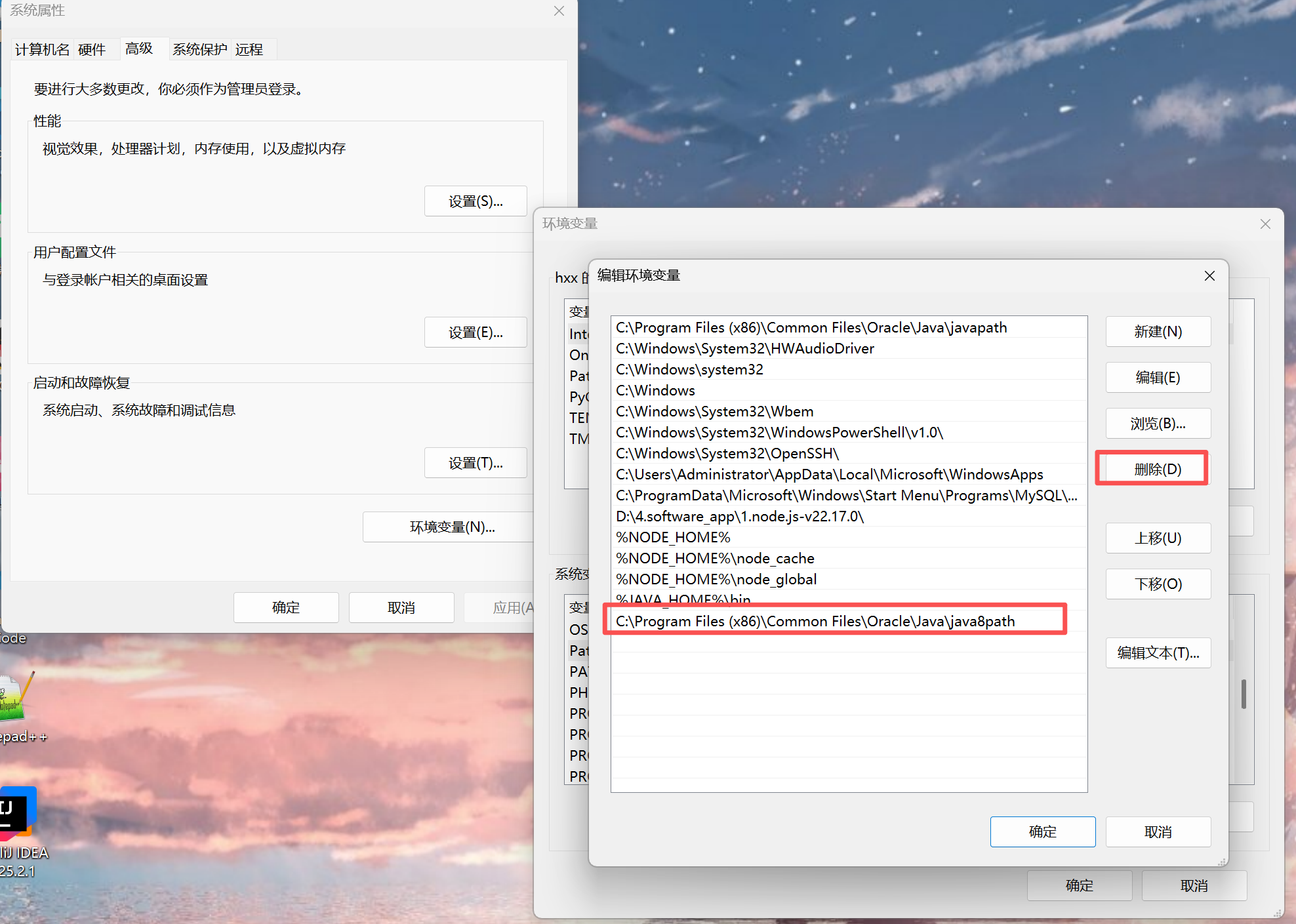 JDK切换失败,原因是有低版本的环境信息已配置,删掉即可