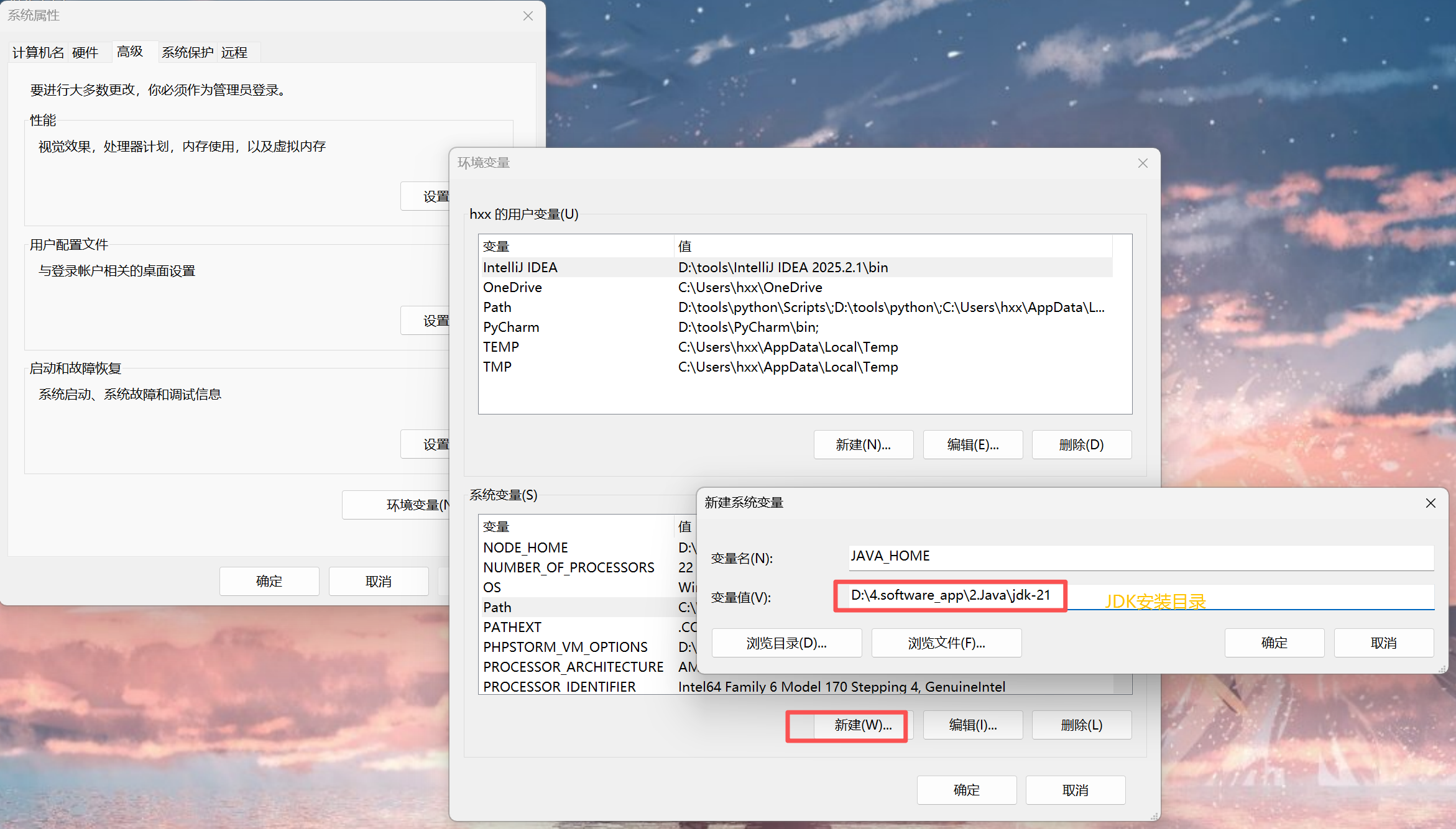 2.在“系统变量”新建一个变量:JAVA_HOME