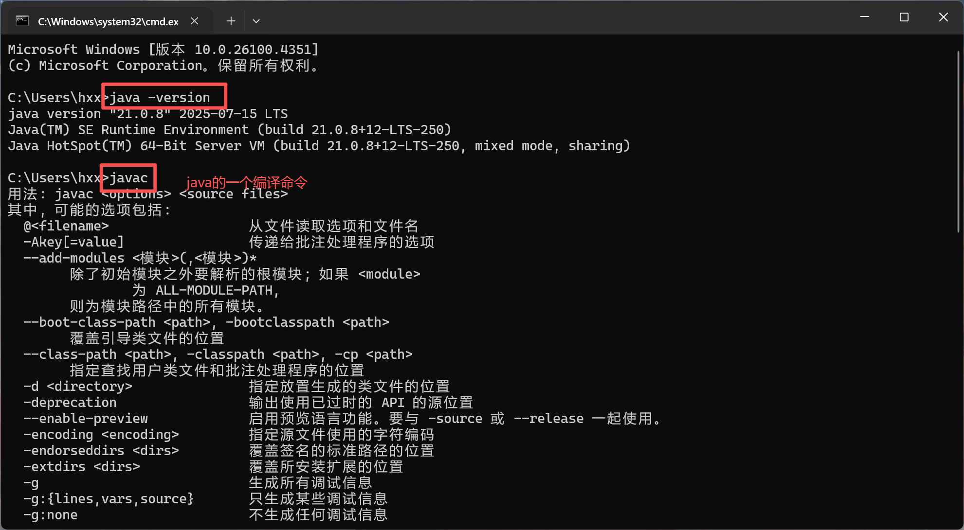 -----------不放心是否安装成功,可再执行“javac”命令