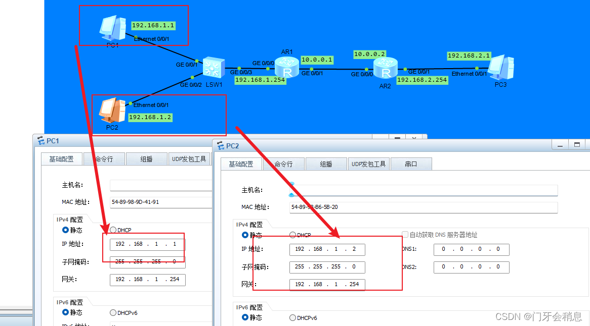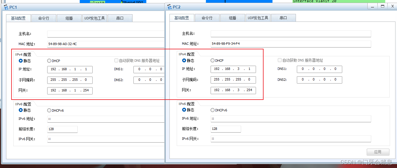 配置到这就可以实现同网段、通VLAN之间的PC之间进行通信