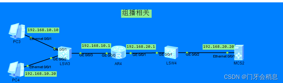在实际网络中,组播需要使用相关的组播协议和组播路由协议来进行控制和管理,以确保数据能够在网络中正确地传输和分发。常见的组播协议包括 IGMP(Internet Group Management Protocol)、PIM(Protocol Independent Multicast)和MPLS Multicast等。