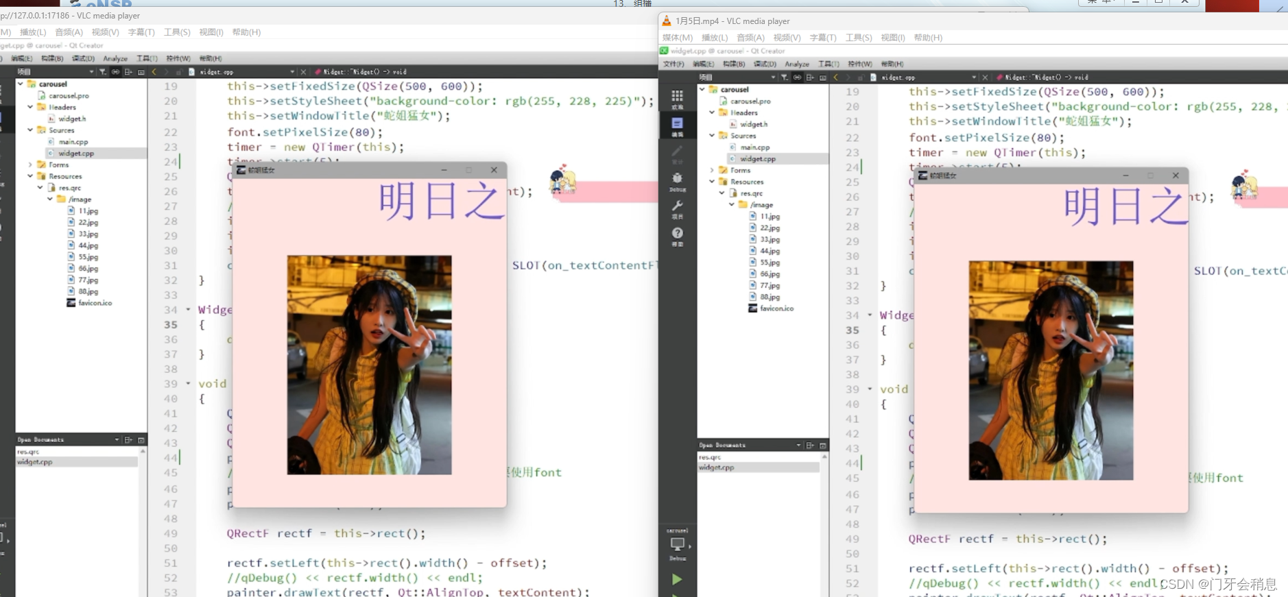 VLC播放效果(左侧是PC播放、右侧是组播源):