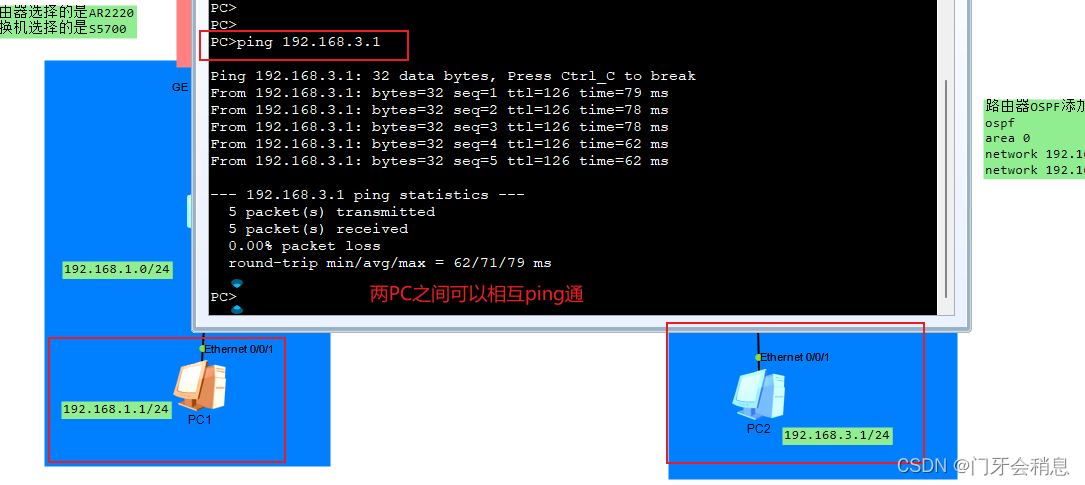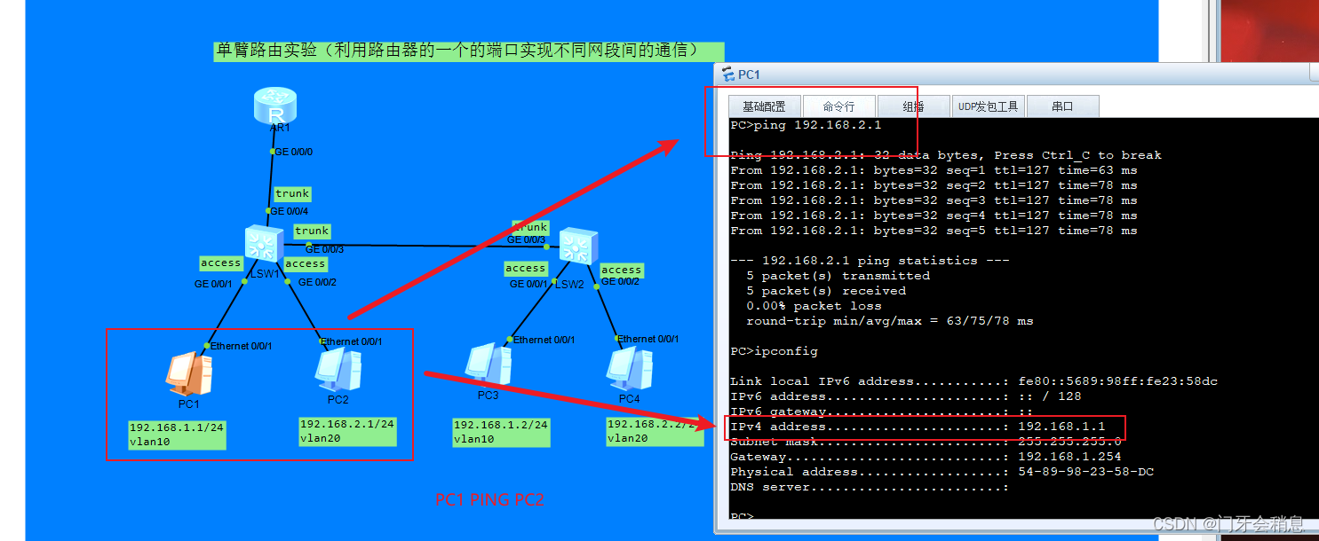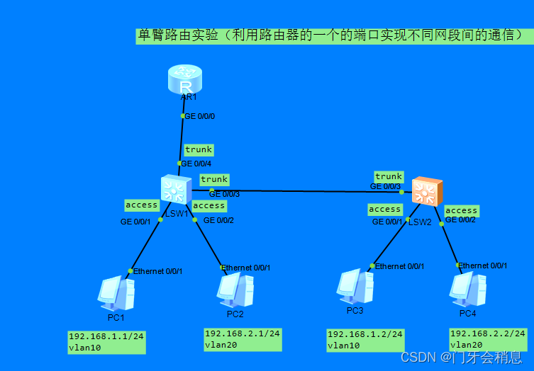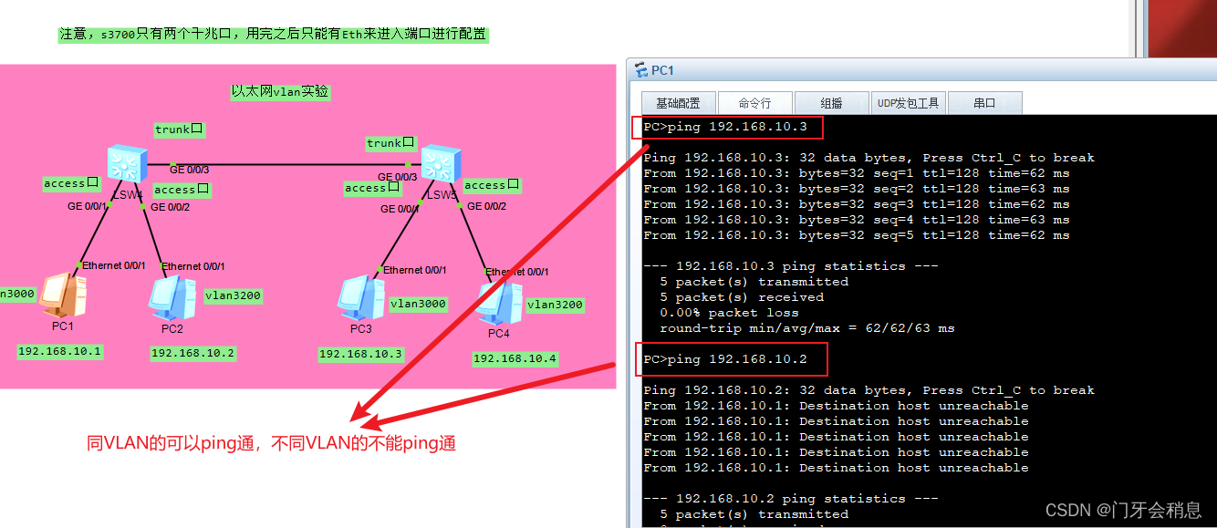 最终实现相同vlan下的PC之间可以ping通,不同vlan之间的PC不能相互ping通。