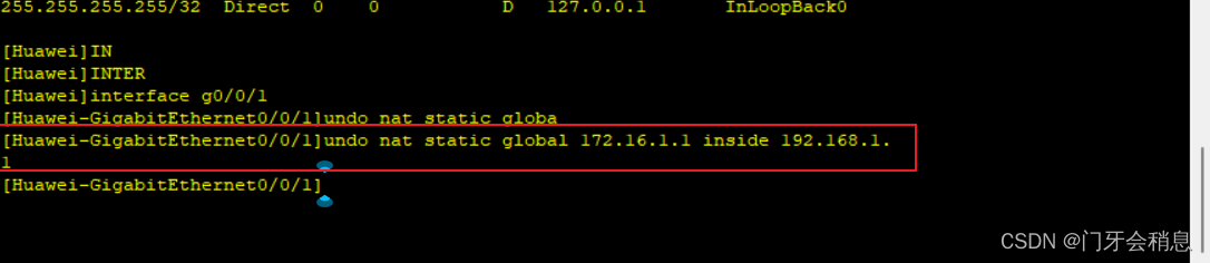 删除NAT:undo nat static global 172.16.1.1 inside 192.168.1.1