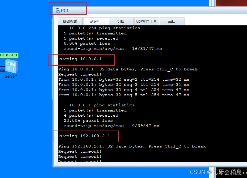 路由器G0/0/1口配置(icmp包直接到达不了PC1)