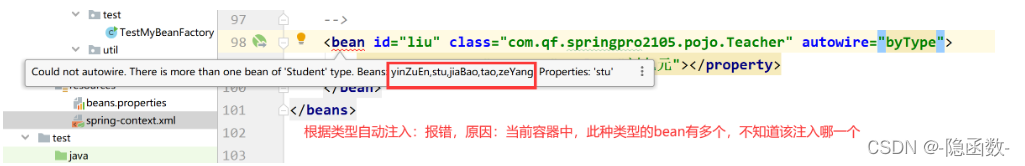 @Autowired //按类型自动装配,到bean容器中,找该类型的bean然后赋值,如果找不到,或找到多个就报异常