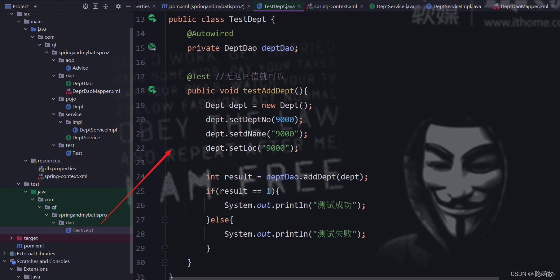 【注意】不要在业务逻辑层捕获异常,如果捕获了,事务则接受不到异常,无法回滚