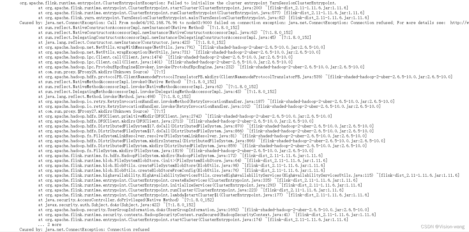 at org.apache.flink.runtime.entrypoint.ClusterEntrypoint.startCluster(ClusterEntrypoint.java:174) ~[flink-dist_2.11-1.11.6.jar:1.11.6]