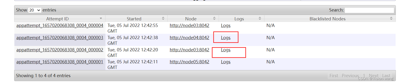 For more detailed output, check application tracking page:http://node05:8088/proxy/application_1657020068308_0004/Then, click on links to logs of each attempt.