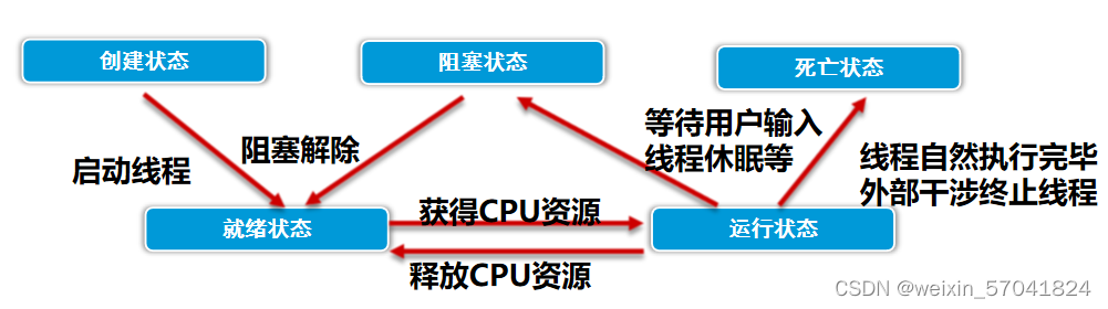 阻塞状态:当调用时sleap(),yield()、join()、wait()、notify时为阻塞状态