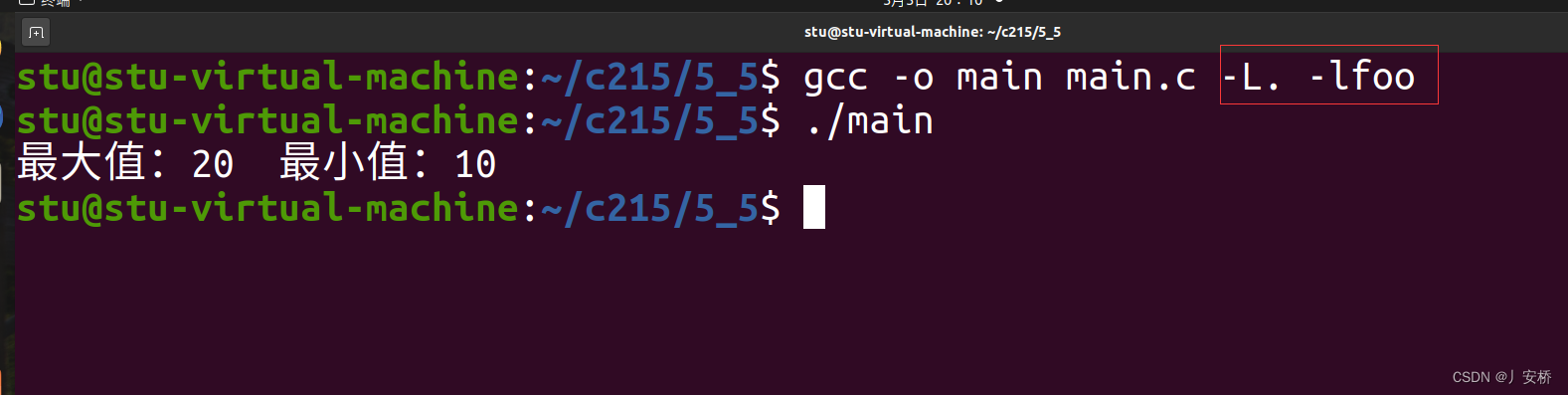再生成可执行文件:gcc -o main main.c -L. -lfoo(这块-L可写可不写,因为它所指定的路径无用)