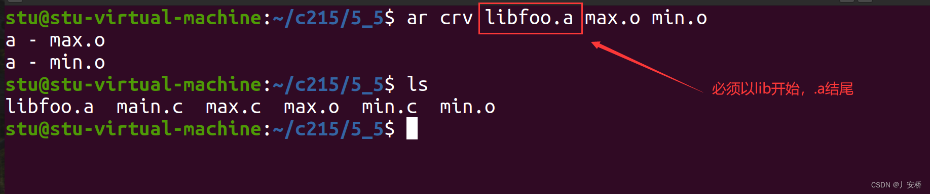 使用 ar 命令将第一步编译的所有”.o”文件生成静态库,其中: