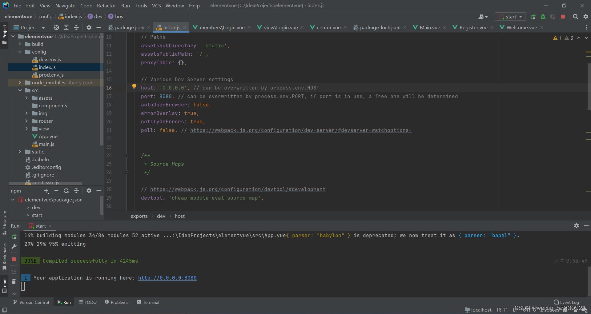 方法1.将index.js中的host的值改为‘0.0.0.0’