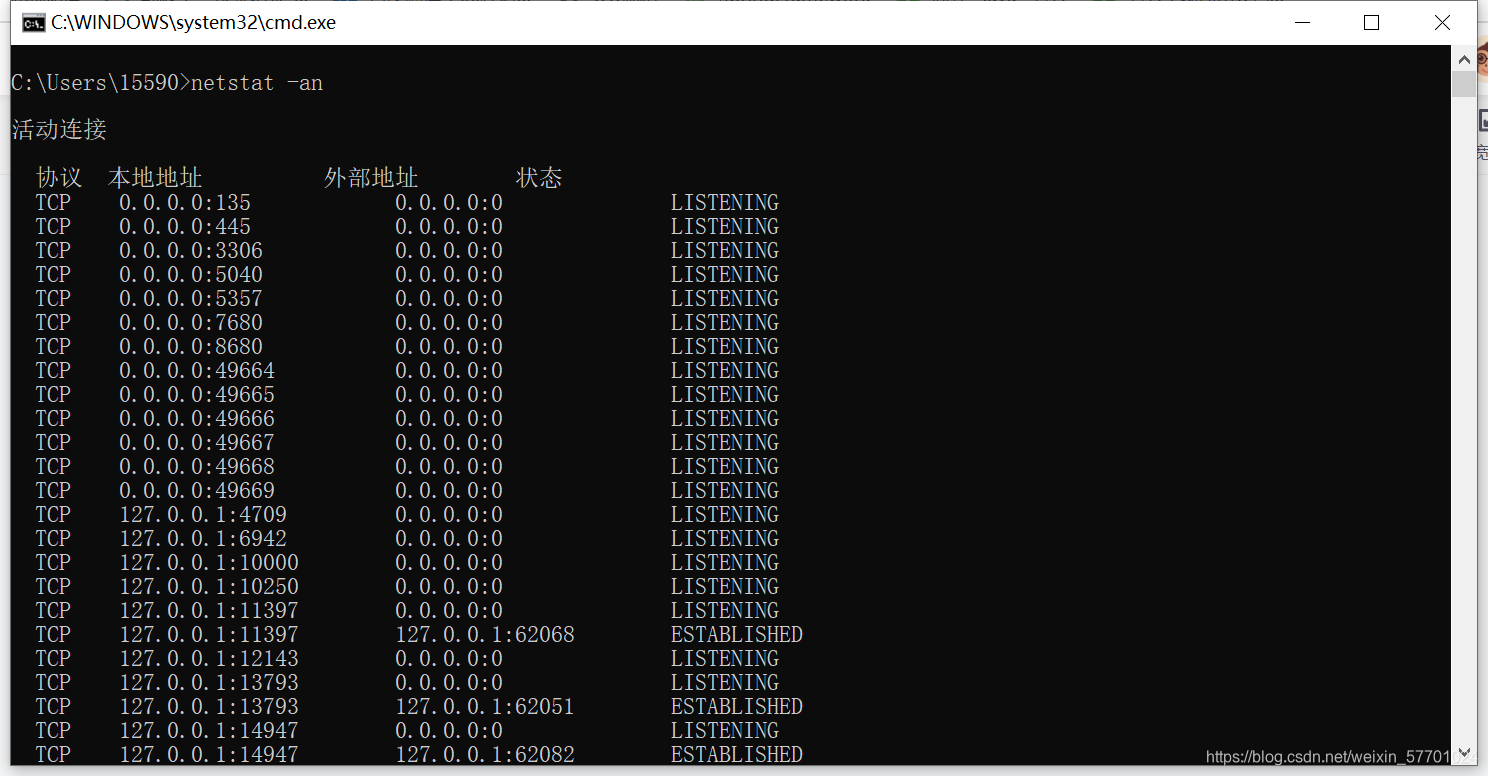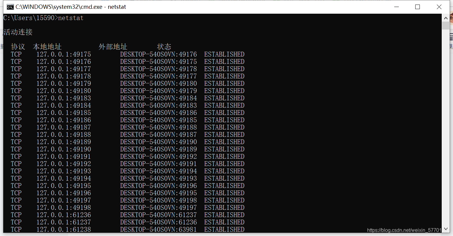 2.在命令行中输入并回车: netstat