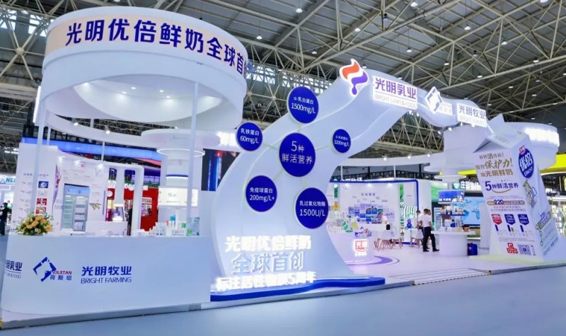 本次大会上,光明乳业携手旗下光明牧业设置展台,全方位展示了光明乳业作为行业领导者的高质量发展成果与雄厚的科技实力。展会现场,光明乳业以“鲜奶活性高,提升保护力,喝光明鲜奶”为主题,全面展示了光明鲜奶的卓越品质。