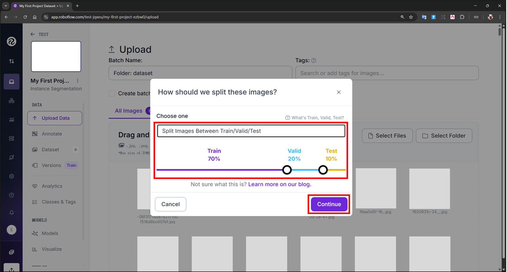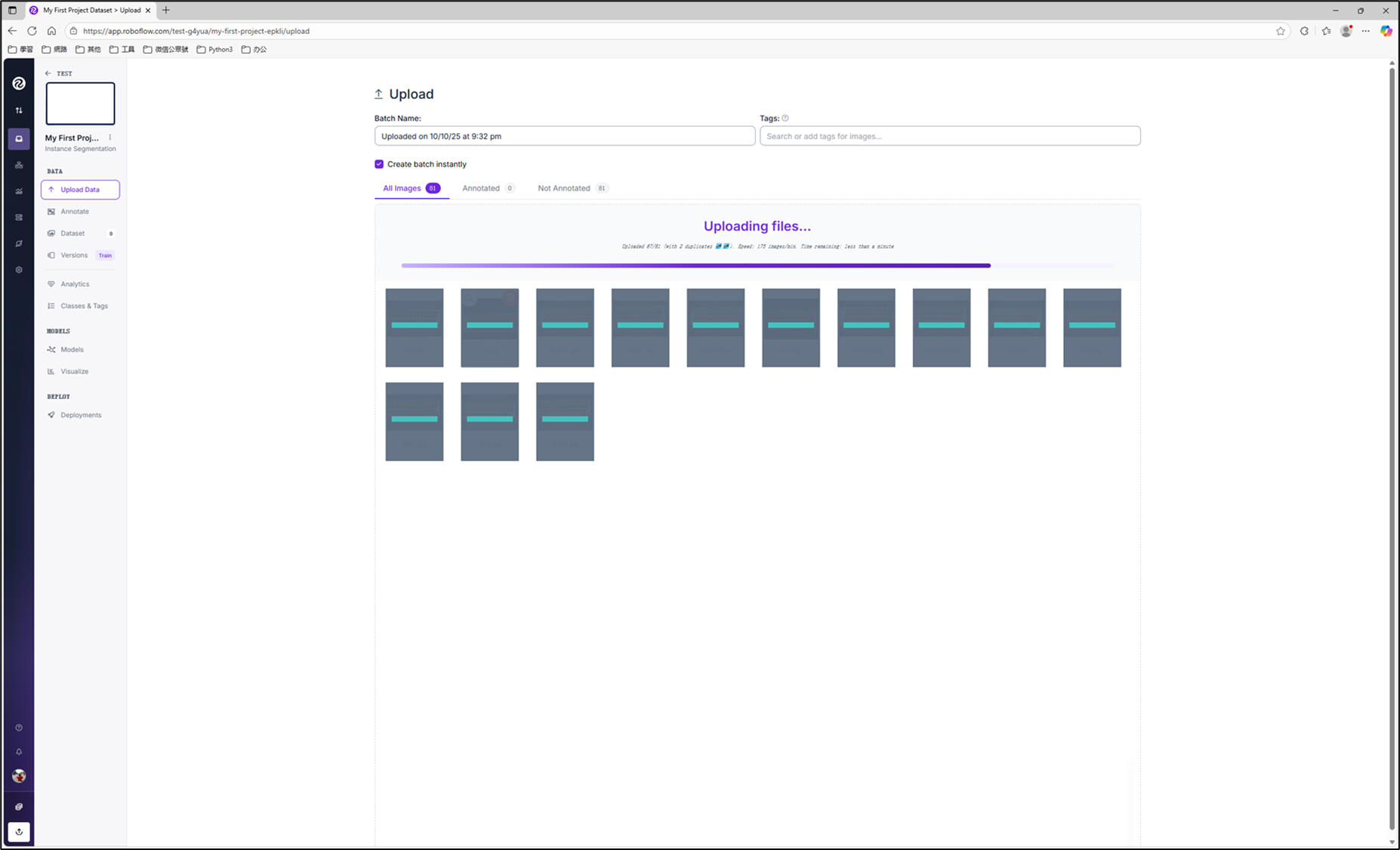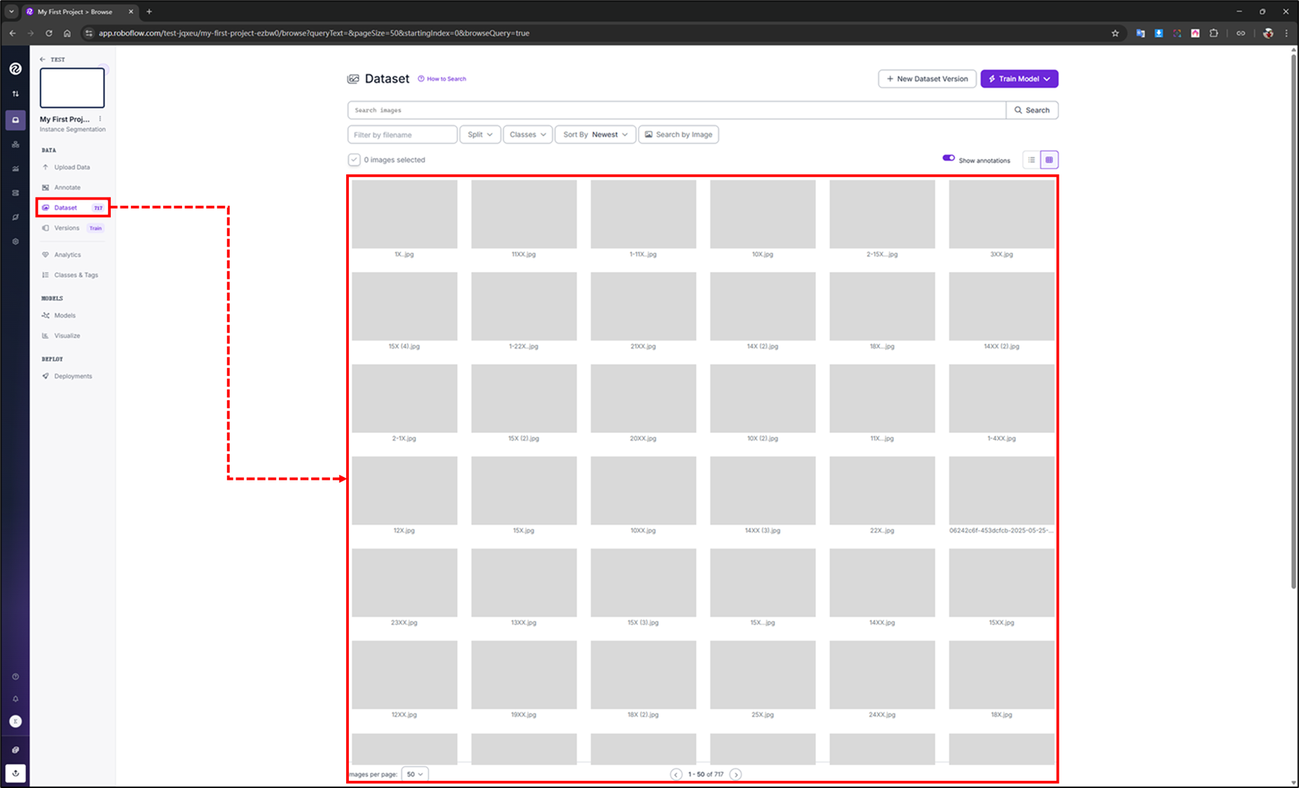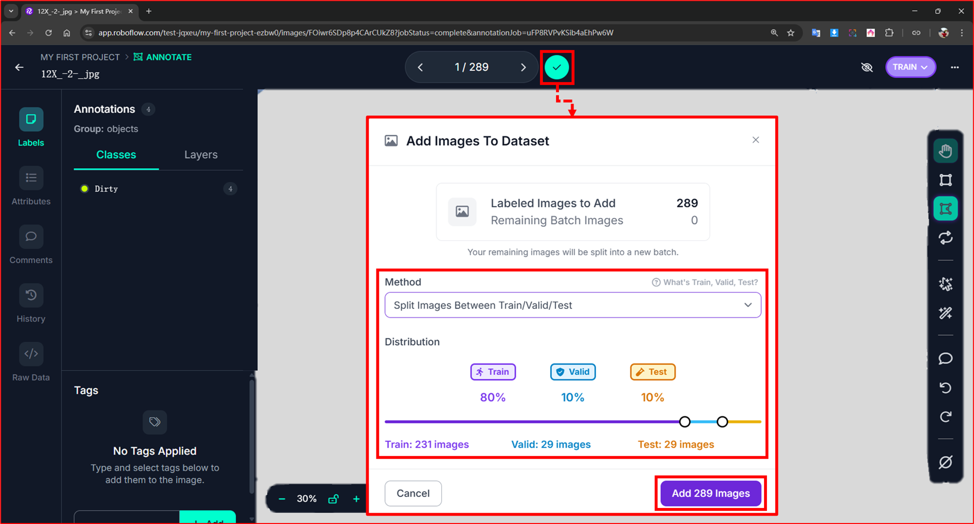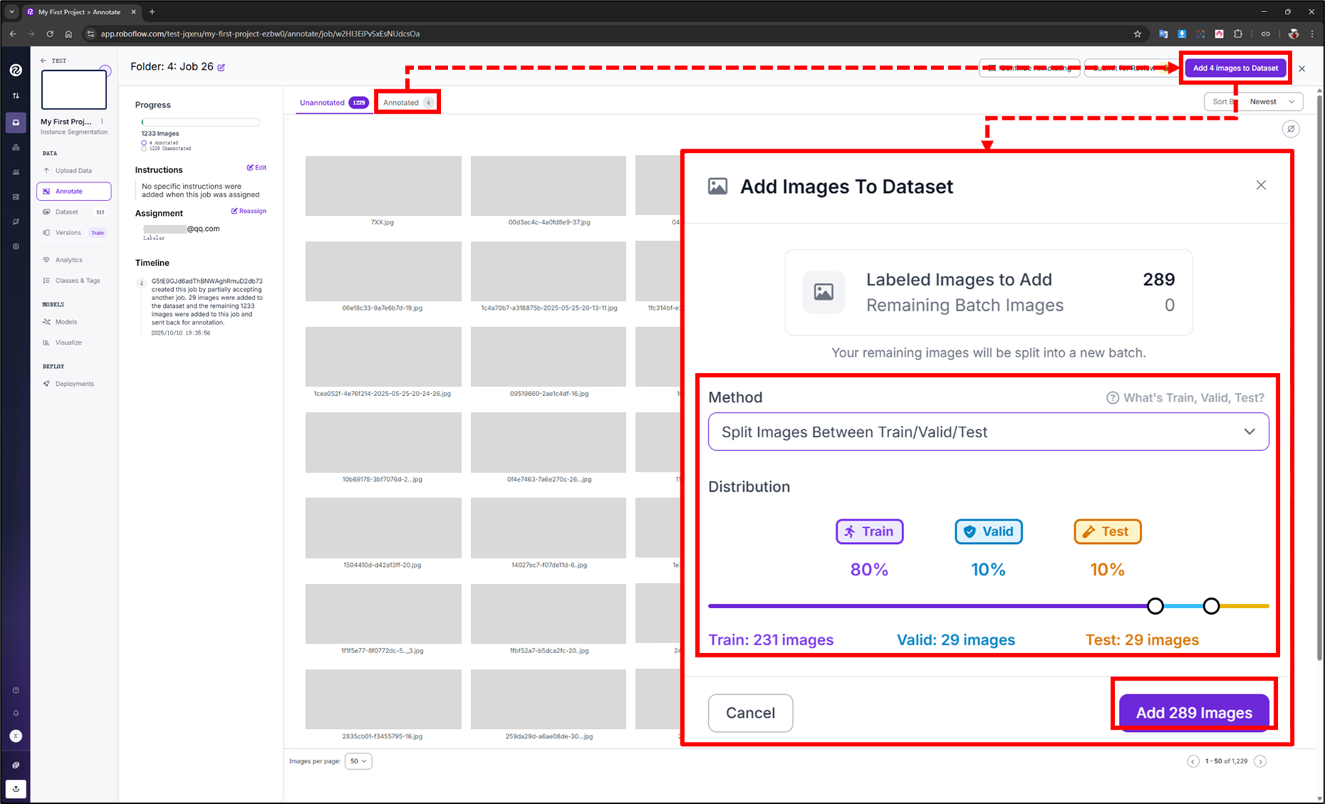 PS:若不以上述方式進行分配或不小心關閉也無妨,數據會存在"Annotate"中的"Annotated"裡,再點擊"Add Images to Dataset"進行分配即可