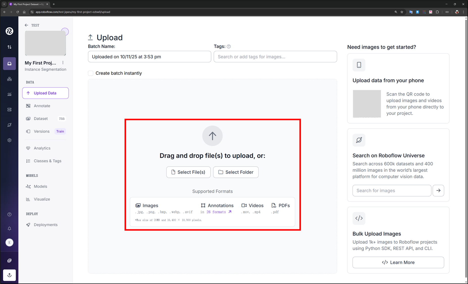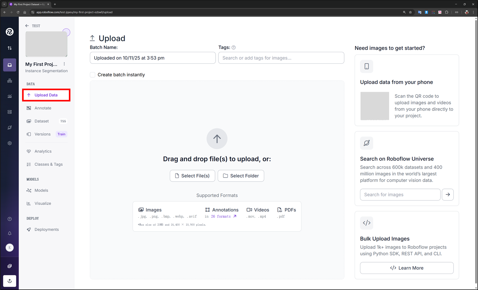 與 Label-Studio 相同的是 Roboflow 也是以 WEB 模式操作:官方網站(操作手冊)