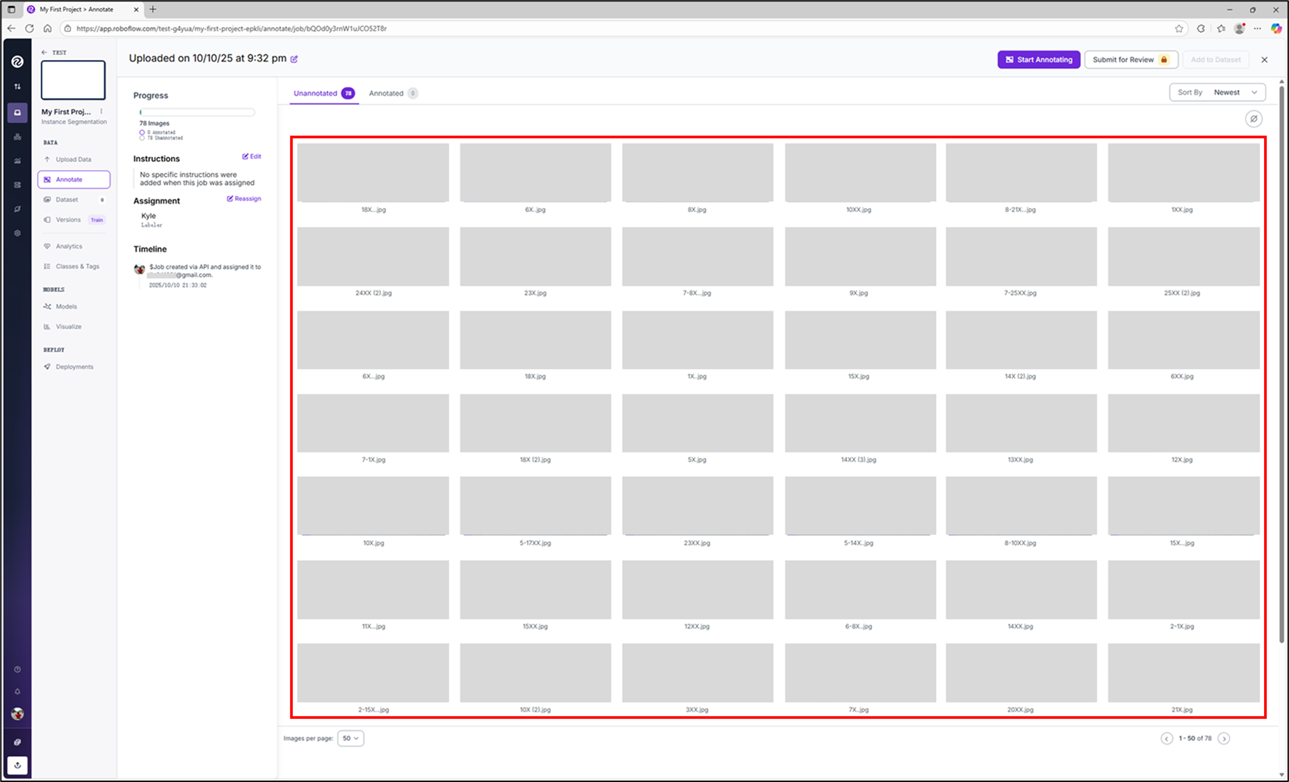 Unassigned Images | Annotating | Dataset
