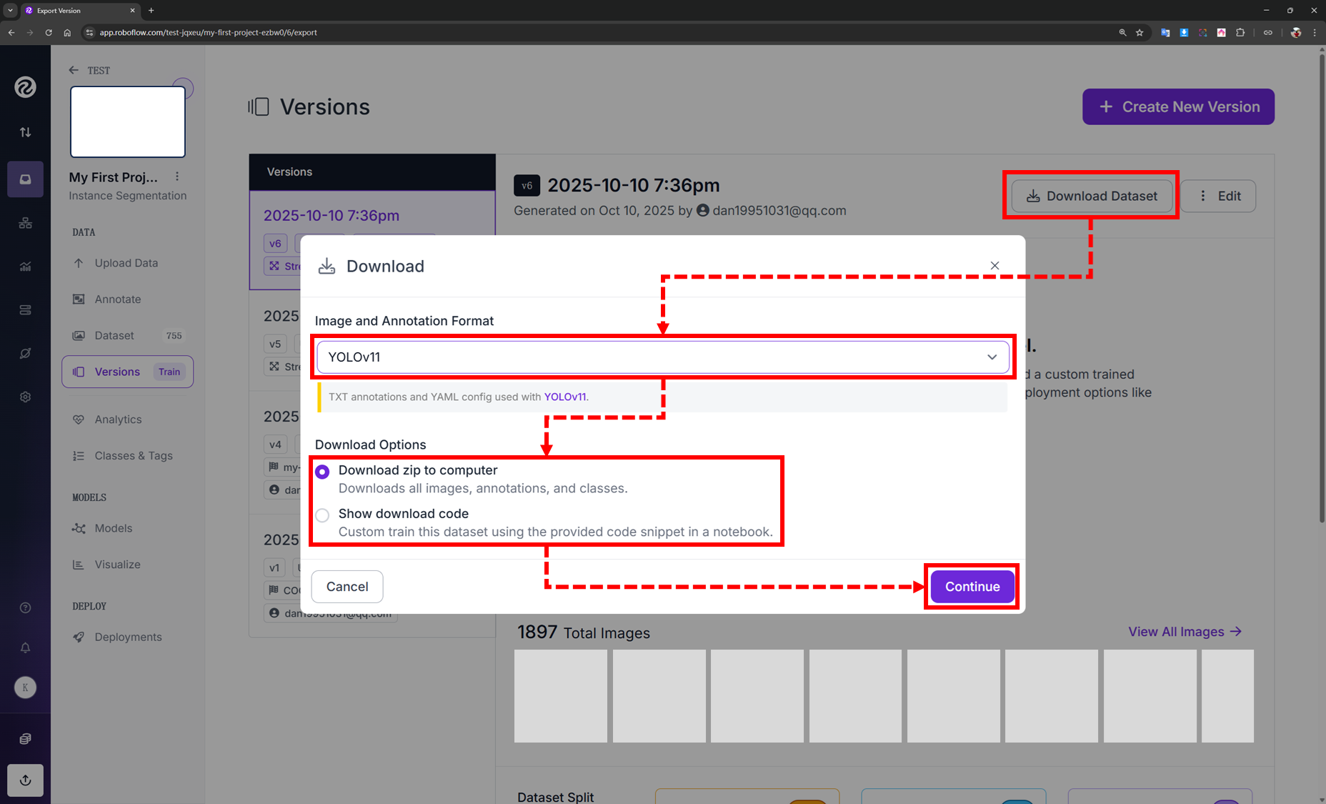 07.點擊"Continue",即可完成數據集導出