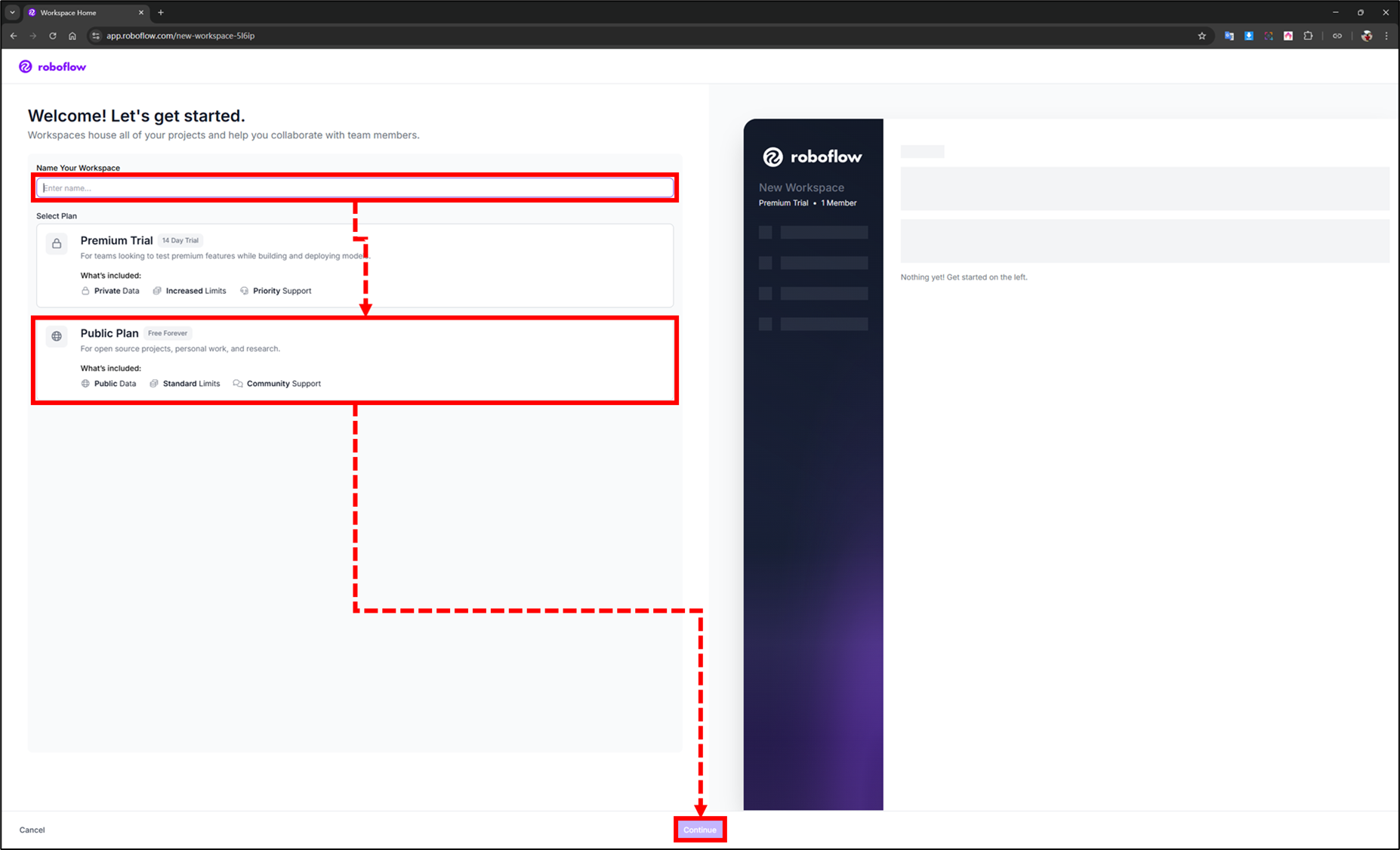 04.點擊"Continue",即可建立新的 Workspace