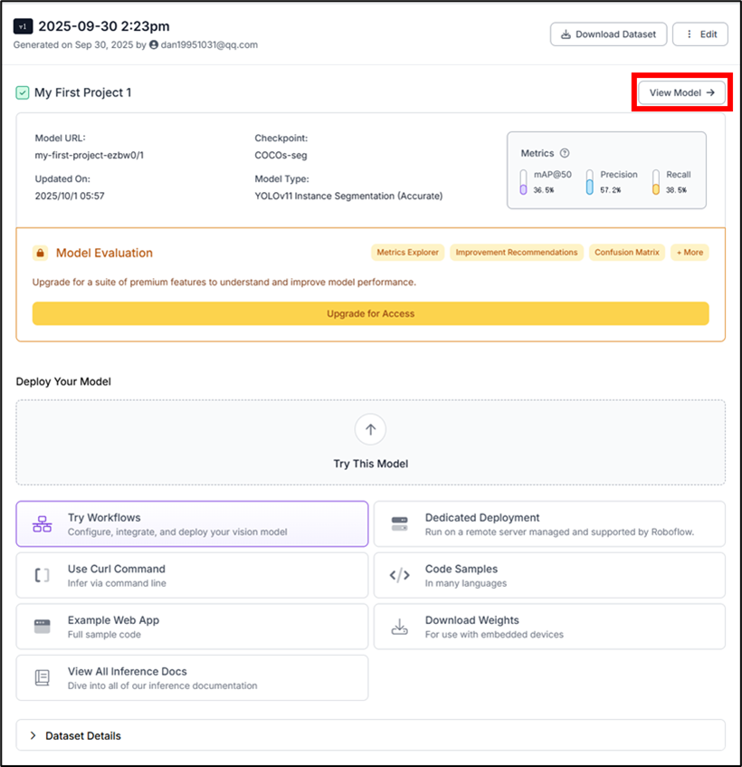 03.待訓練完成後,點擊"View Model"可查看訓練成果