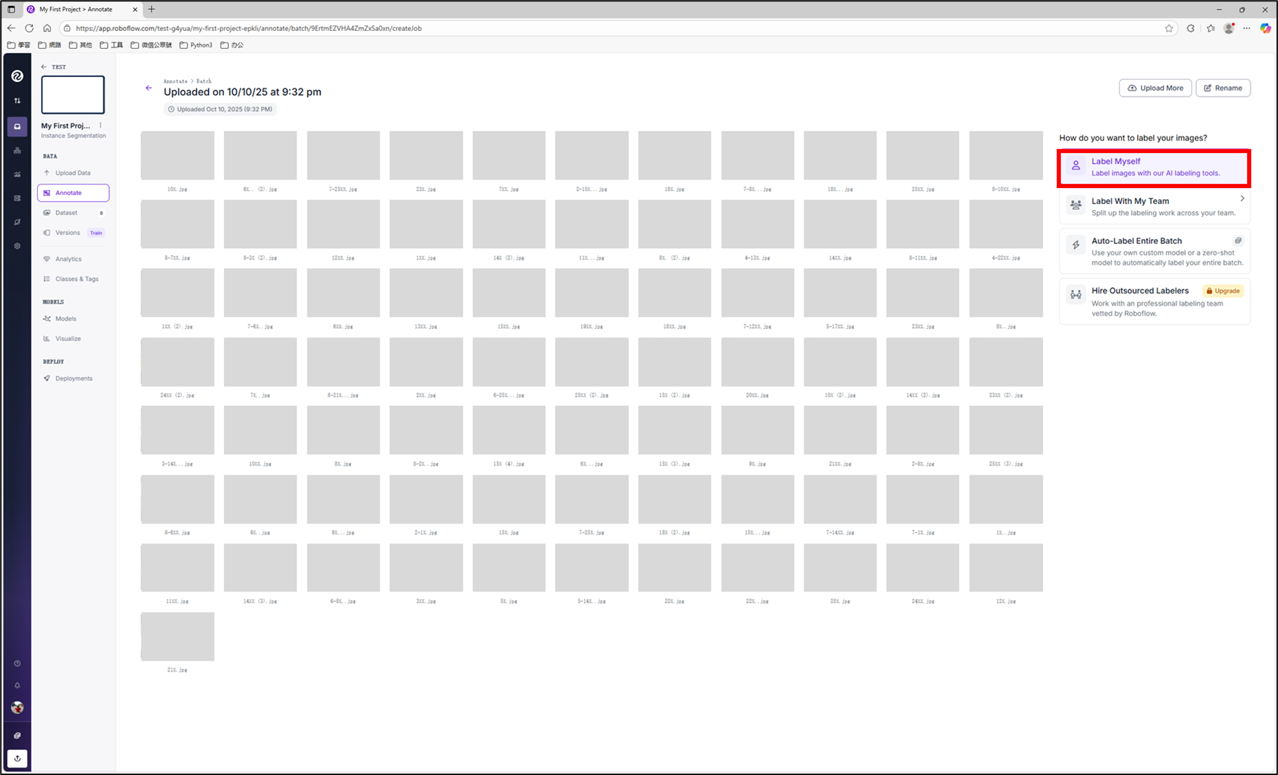 [1.3.1] 單人作業 => 點擊"Label Myself",本案以"個人標註"為例