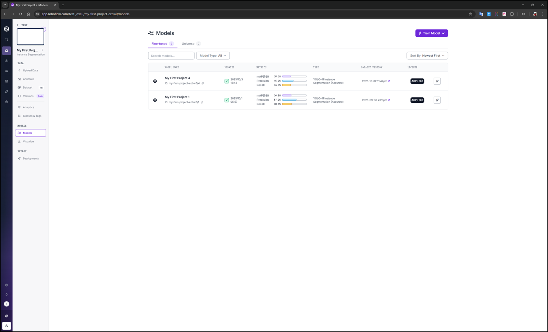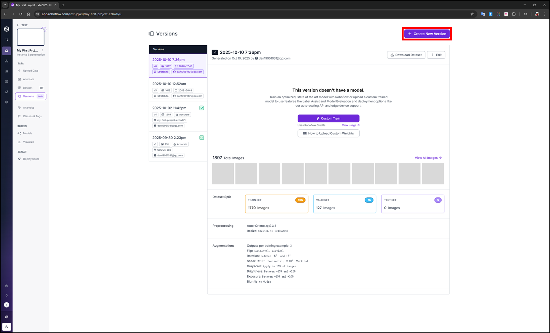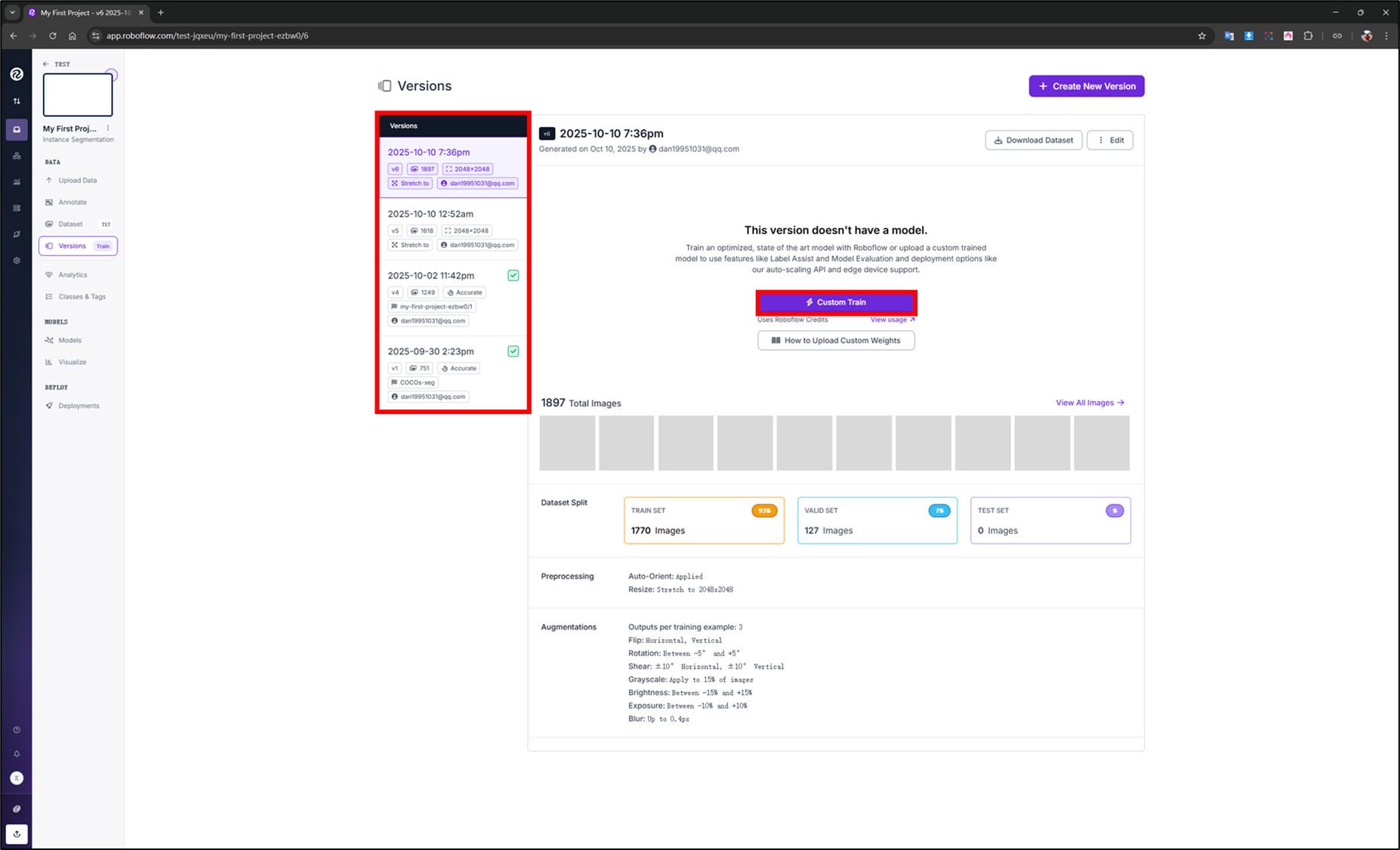02.找到要訓練的 Version,點擊"Custom Train"